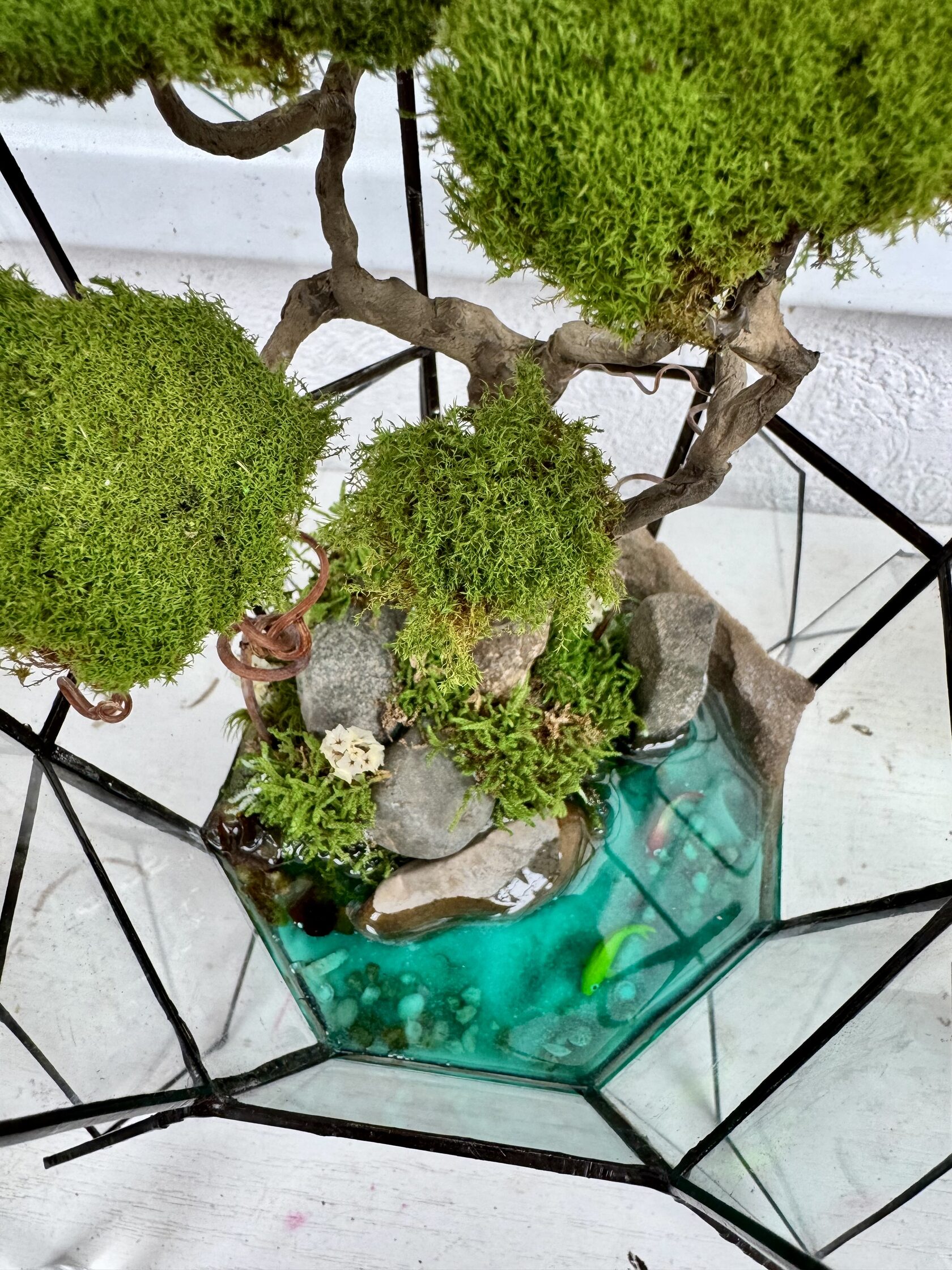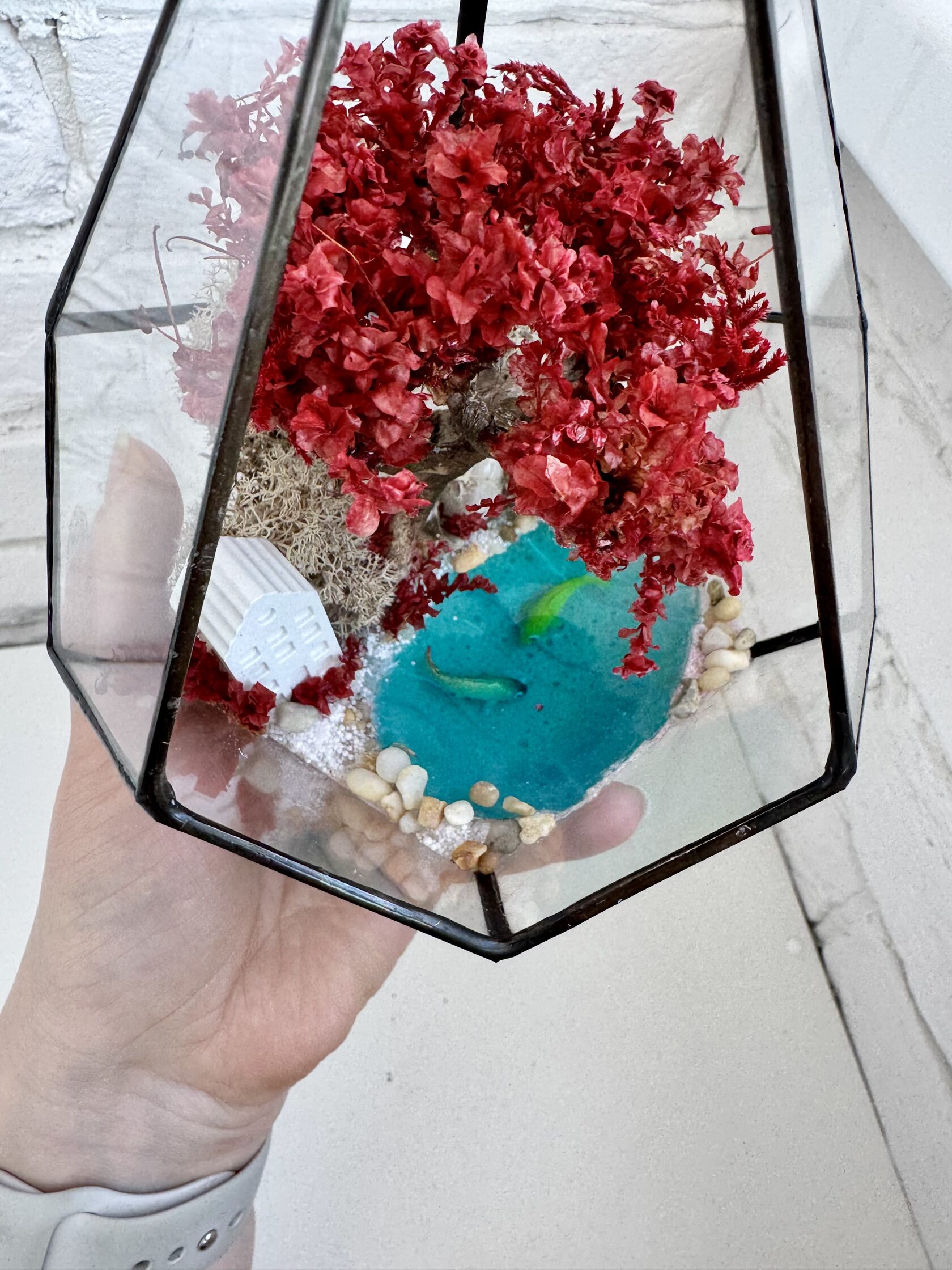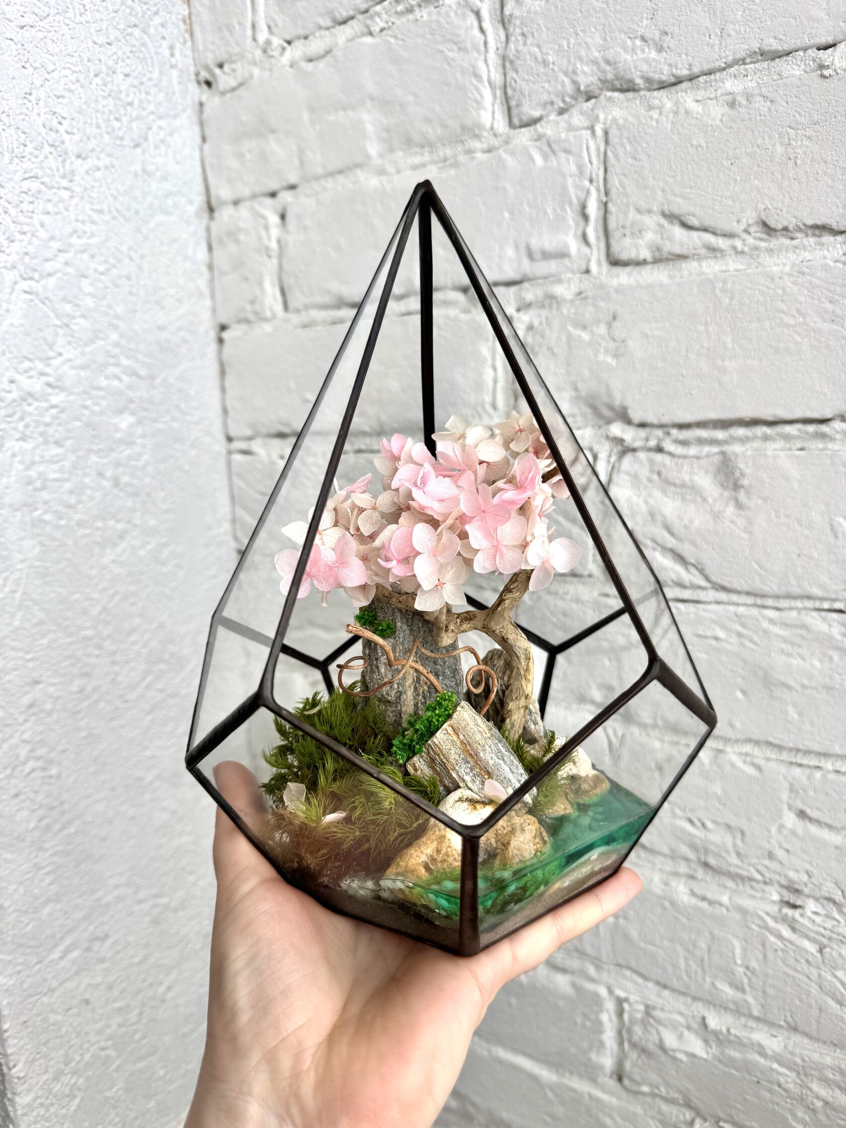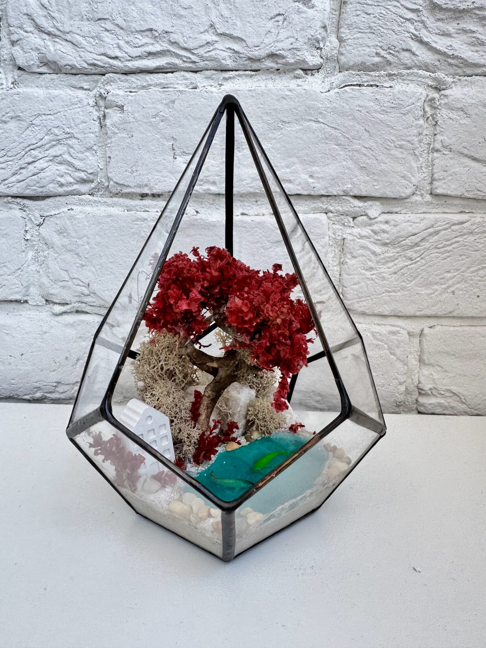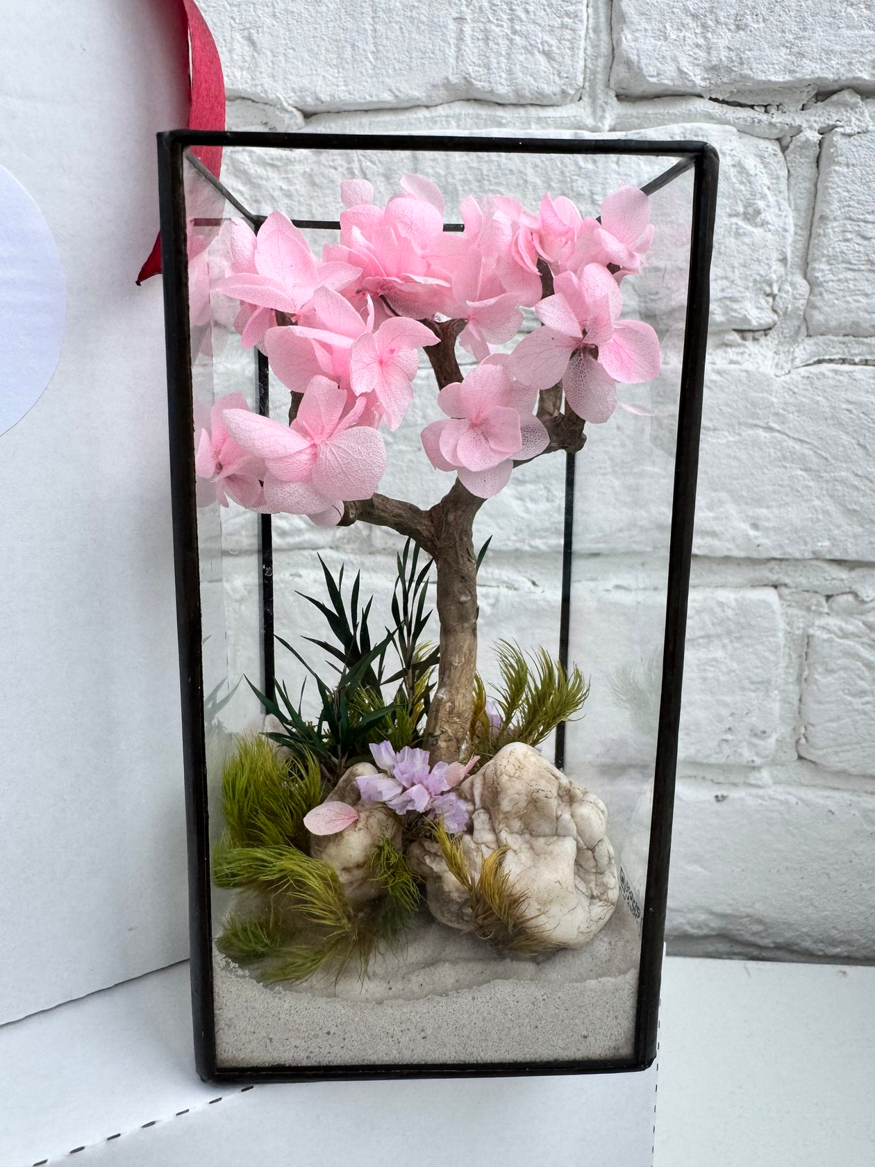 Моссариум — это миниатюрный оазис спокойствия и красоты, который станет украшением любого интерьера. Этот очаровательный флорариум создан с любовью вручную мастером, а стабилизированный мох придает ему невероятно реалистичный и умиротворяющий вид. Моссариум не требует особого ухода, он прекрасно впишется в любой дизайн и добавит нотку свежести и природной гармонии в ваш дом или офис.