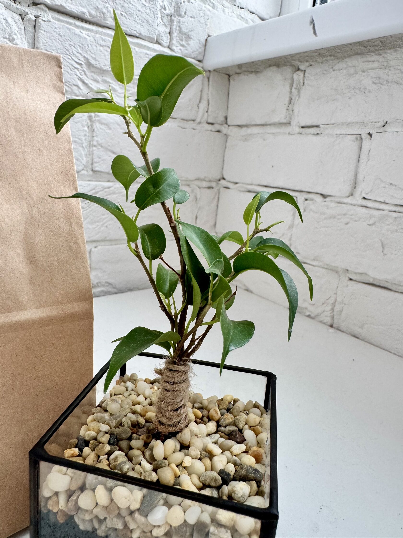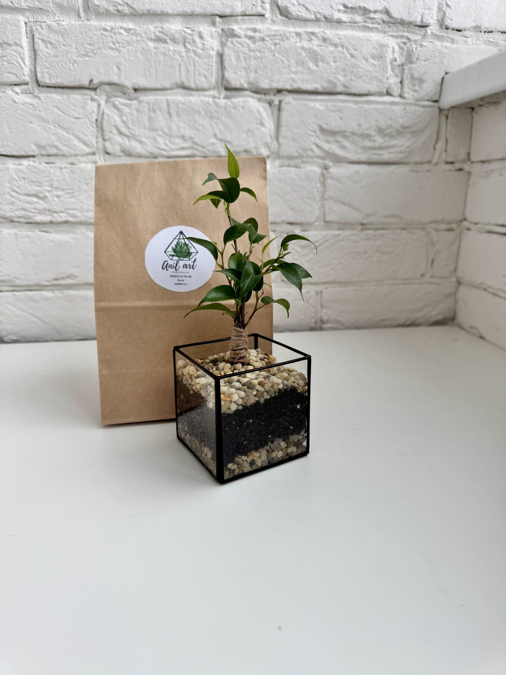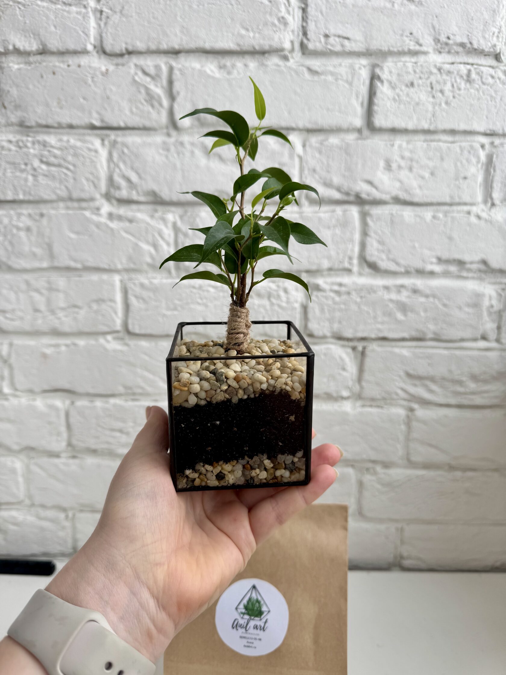 Флорариум требует минимального ухода, размер 8*8*8 см. Полив 1 раз в 7-10 дней в теплое время года и 2 раз в месяц - в холодное.